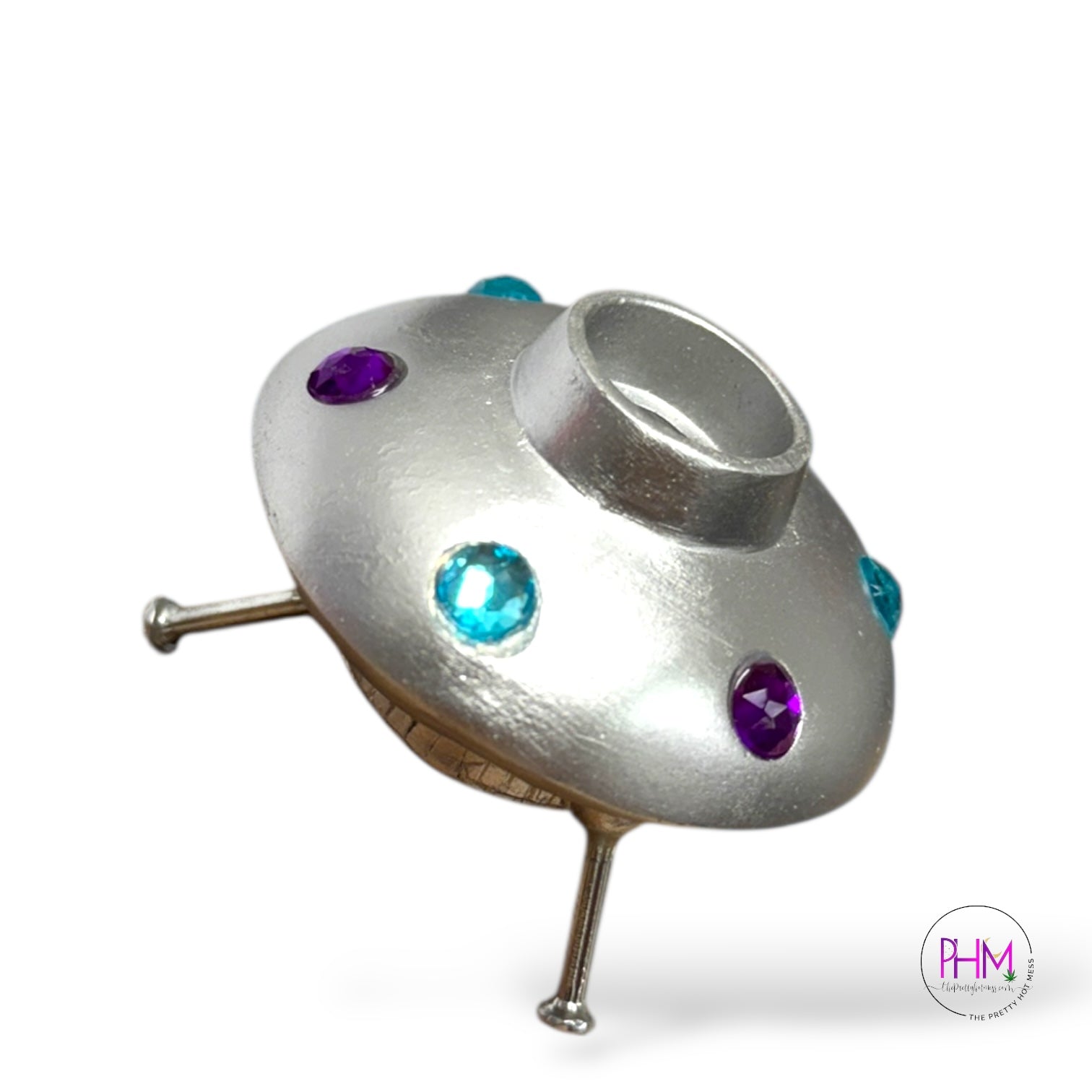 Take your senses on an interstellar journey with the Celestial Cruiser Backflow Burner. Shaped like a sleek little spaceship, this 3.5" burner is perfect for anyone who loves blending cosmic vibes with soothing incense rituals.