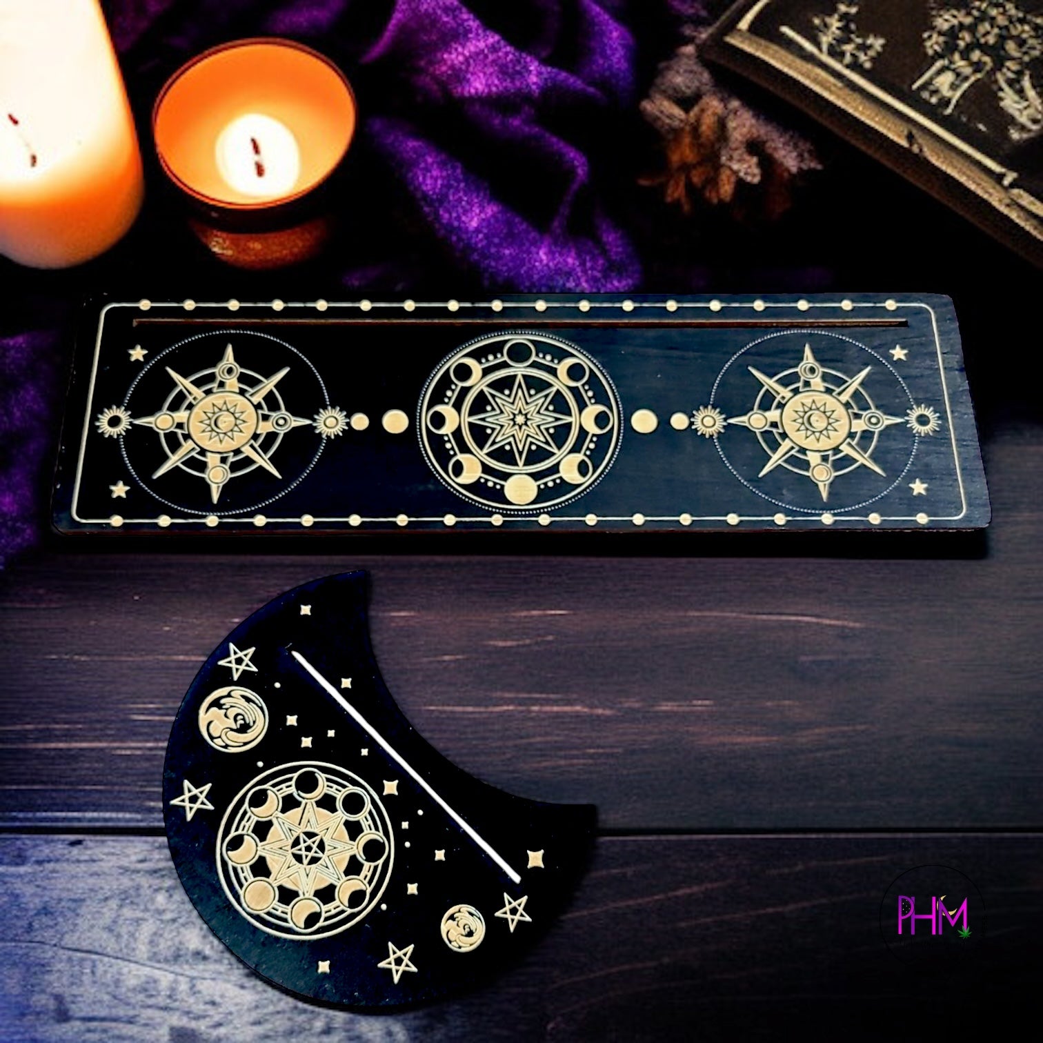 Each piece is thoughtfully crafted with intricate celestial and mystical designs, bringing both functionality and sacred beauty to your altar or reading space. Choose from multiple designs and sizes, available as one-piece or two-piece sets, each handmade with care and intention.
