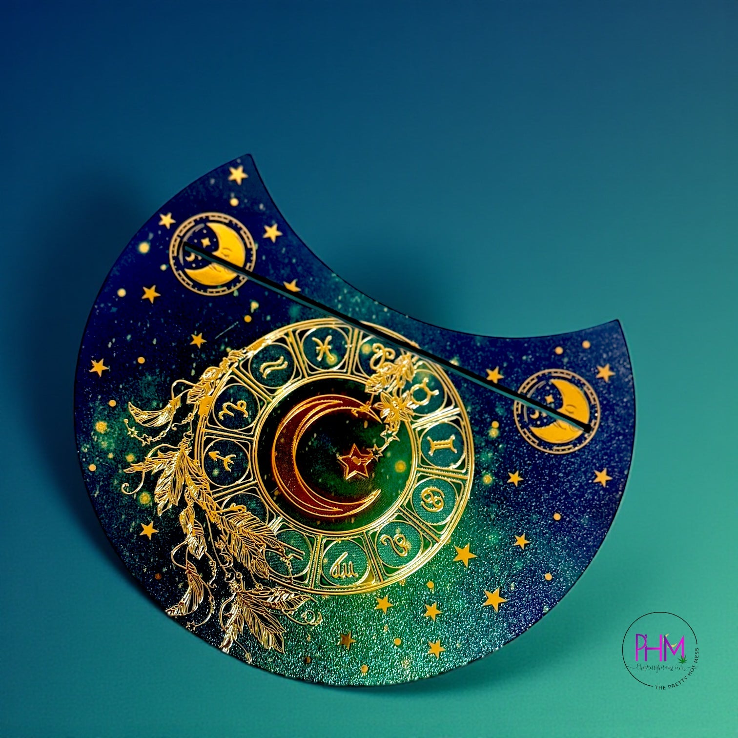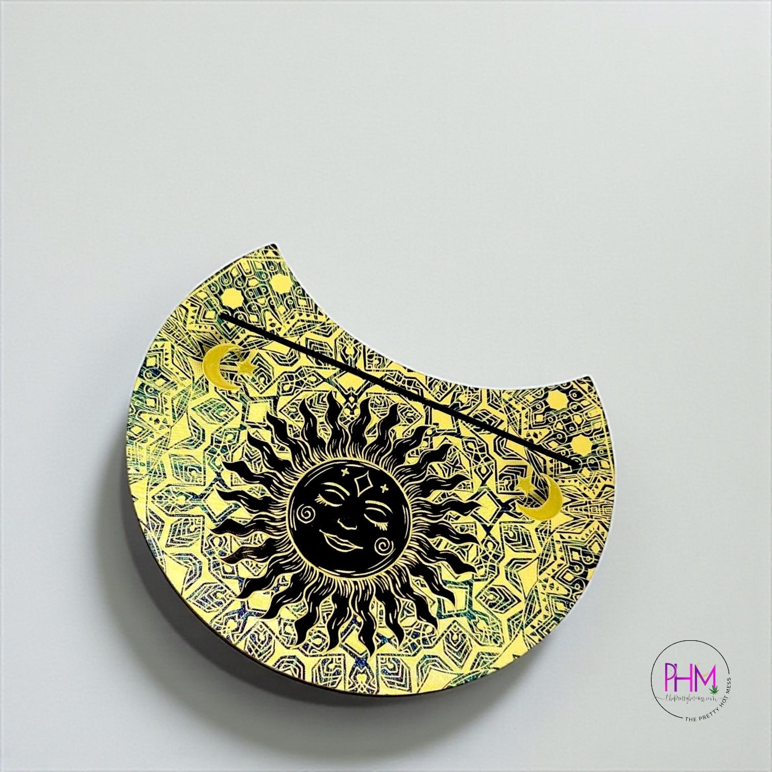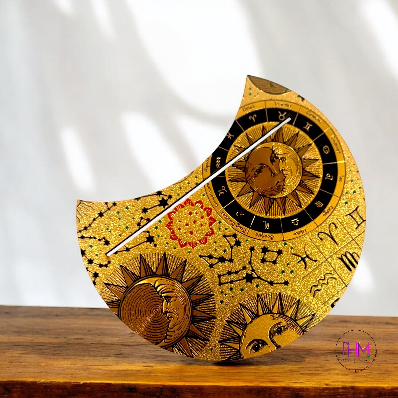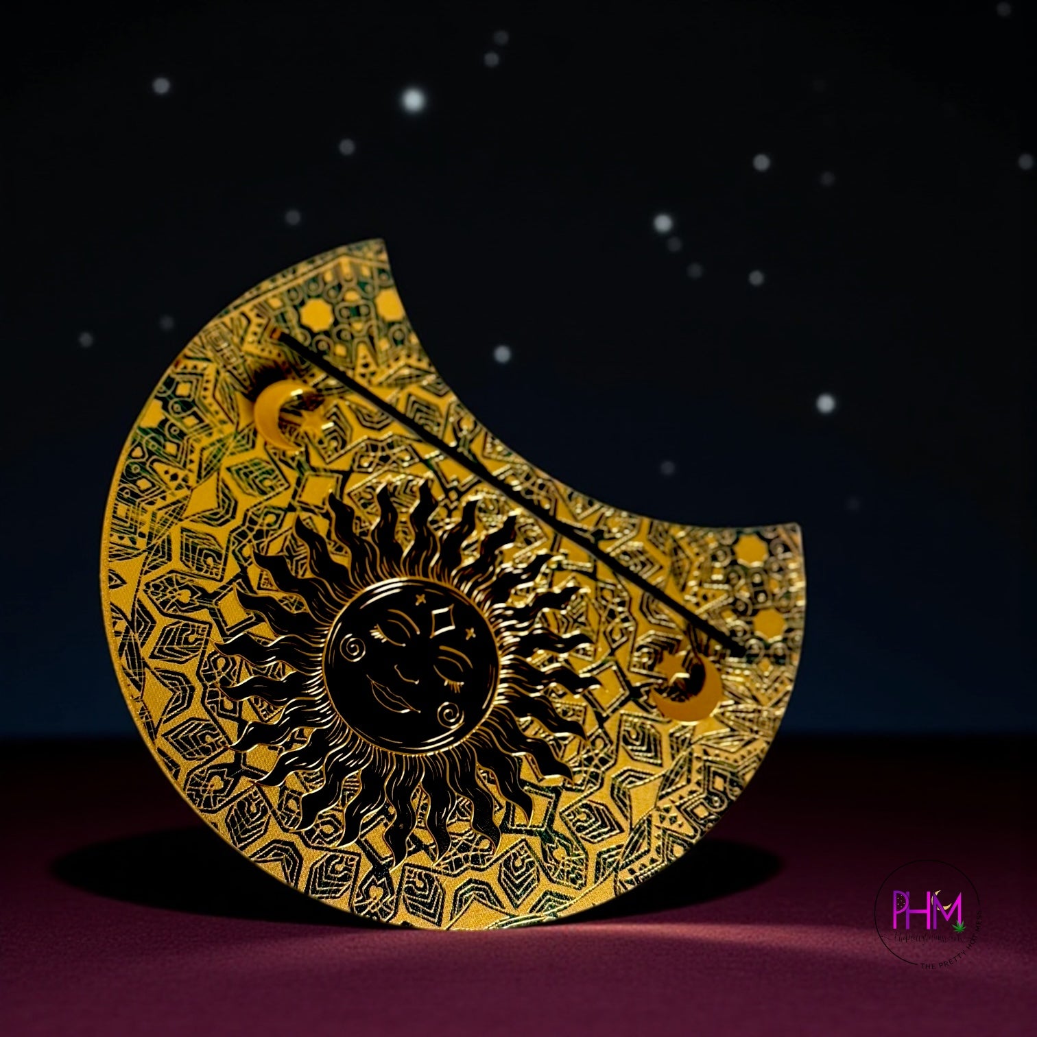 🌙 Crescent Moon Disc (5") – Perfect for displaying a single tarot card with moon phase detailing that channels divine feminine energy and cosmic balance.