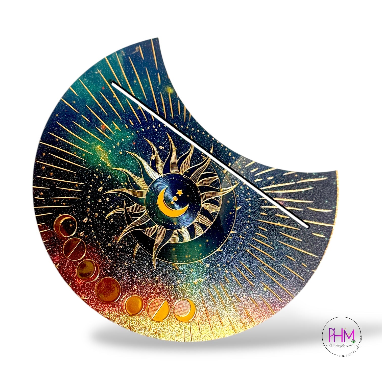 🌗 Moon Phase Holder (3"W x 10"L with 5" Moon Disc) – A larger design ideal for showcasing multiple cards, crystals, or small ritual items.