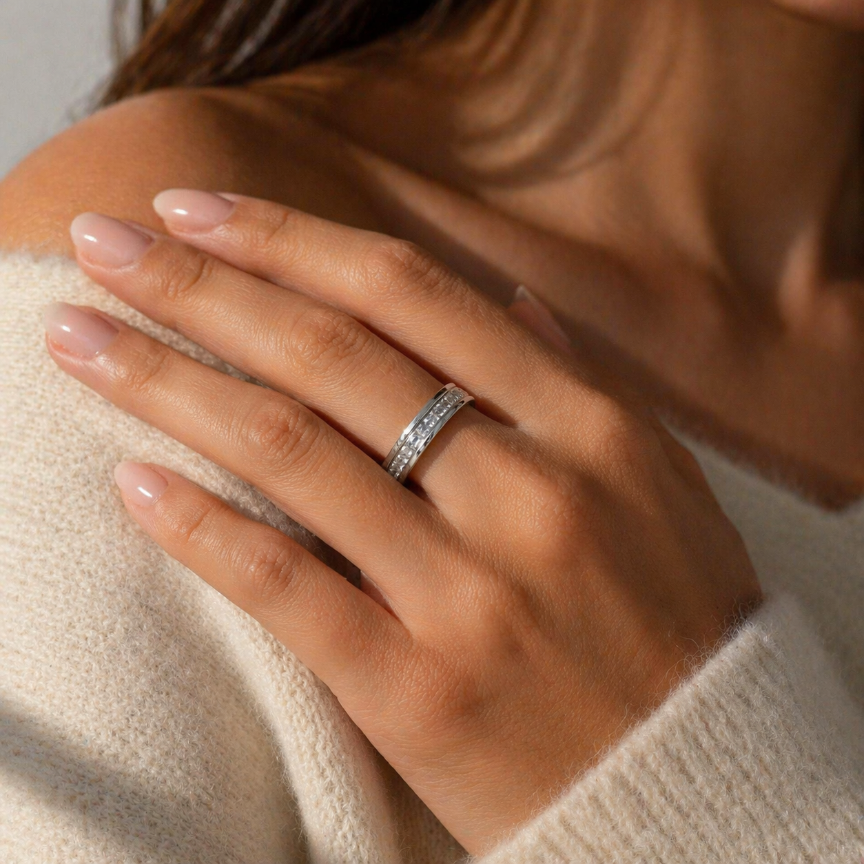 Designed with shimmering zircon stones that catch the light from every angle, this beauty gives full-on “don’t touch me unless you brought snacks or compliments” energy. And that smooth spinning band? Addictive. You’ve been warned 😏