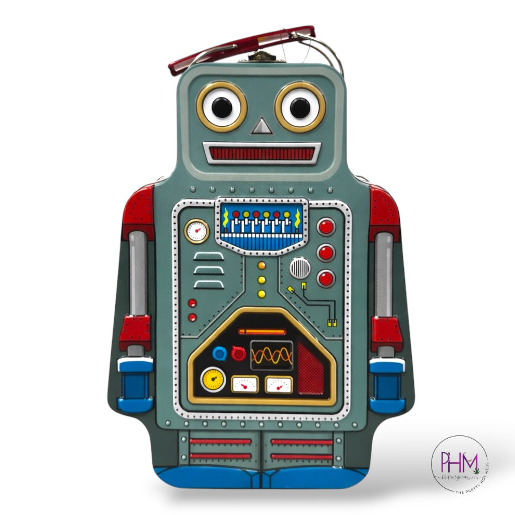 Made from durable tin with bold vintage robot vibes, this piece brings serious 80s and 90s energy while being sturdy enough to protect your keepsakes for years to come. Display it on your shelf between shows or carry it proudly into the next concert like the seasoned Blockhead you are.