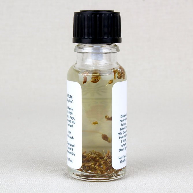 Hekate Oil is crafted to honor Hekate, the goddess of the triple aspect, magic, crossroads, and the dead. This oil is formulated to encourage the qualities associated with Hekate, including intuition, protection, transformation, and guidance through liminal spaces.