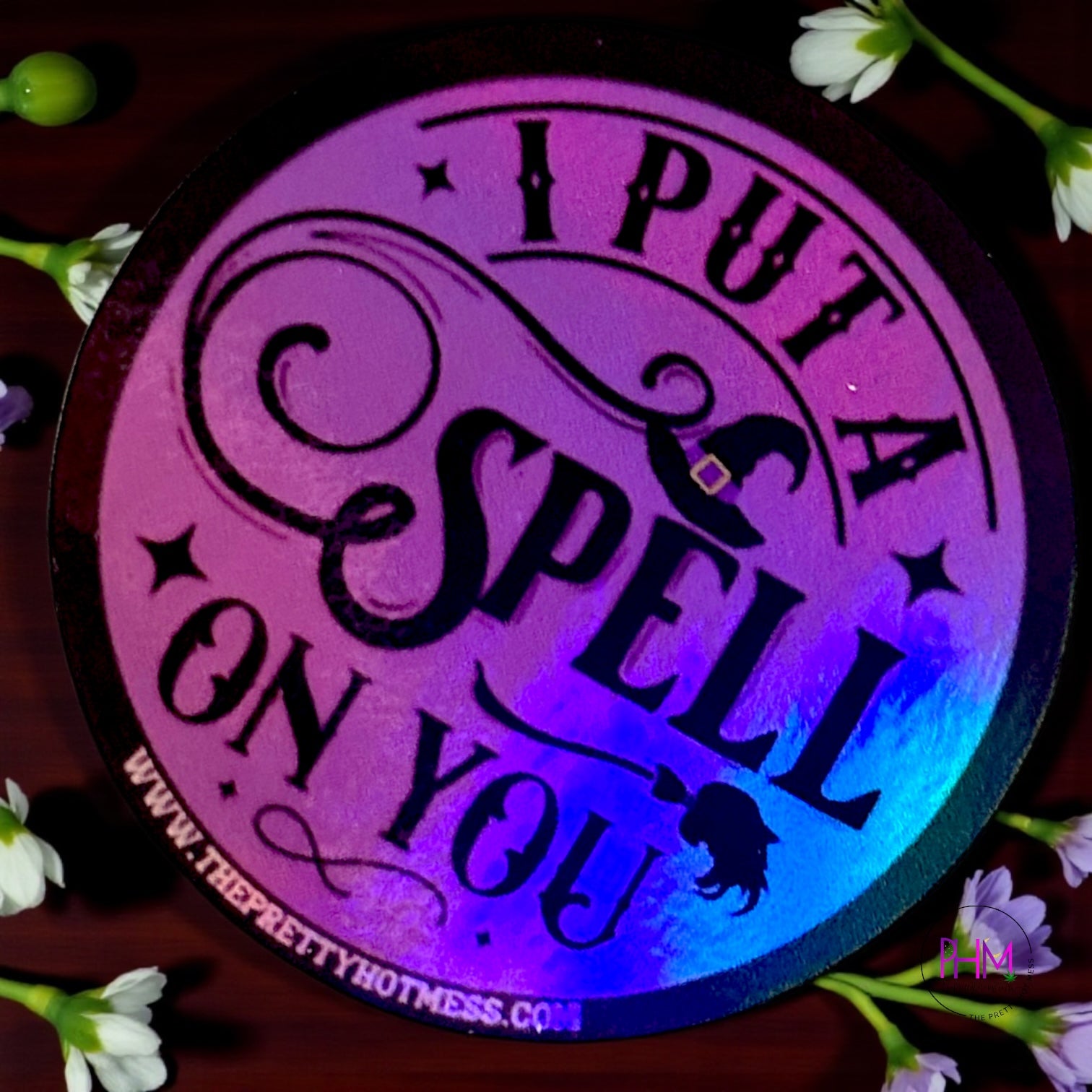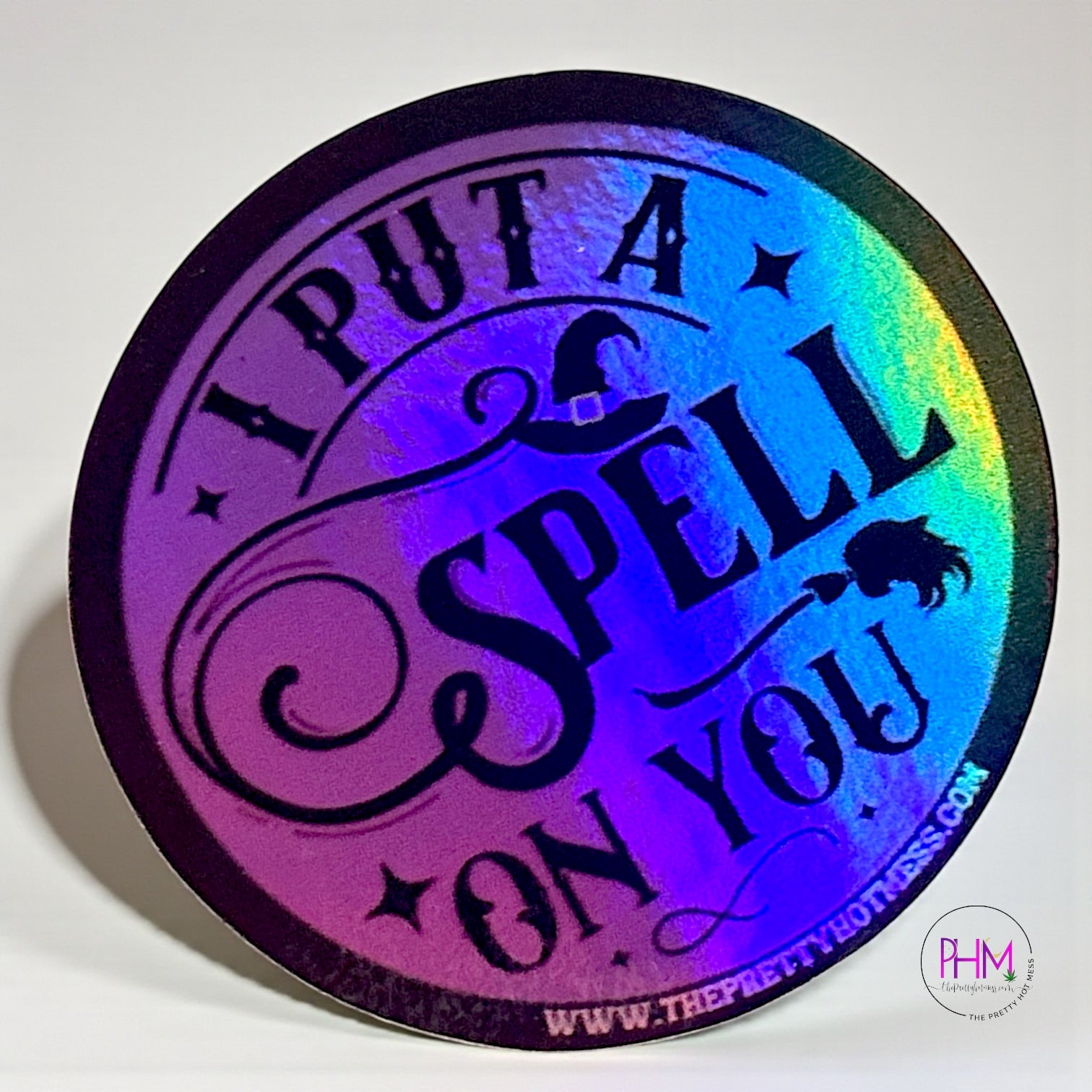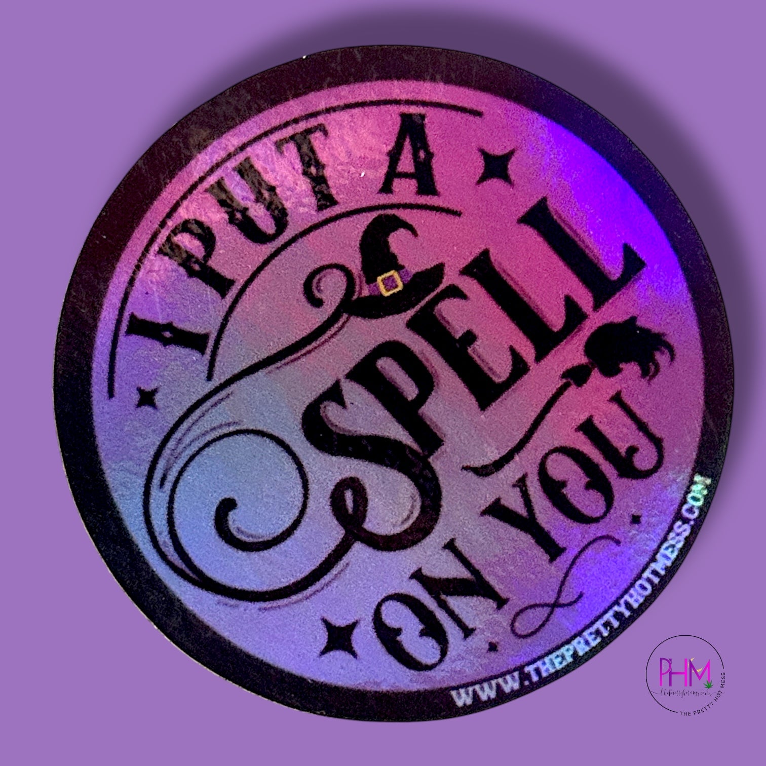 Cast a little charm wherever you go with our I Put a Spell On You Holographic Sticker! This mesmerizing 2-inch vinyl beauty shimmers and shifts with every flicker of light—just like real magic should. Perfect for laptops, water bottles, notebooks, or your broomstick, this spellbinding sticker is built to last with heavy-duty, weather-resistant vinyl that won’t peel or fade.
