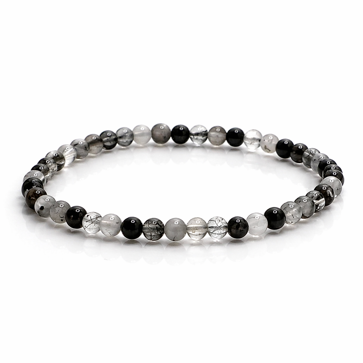 • 4mm genuine Black Tourmaline + Clear Quartz beads