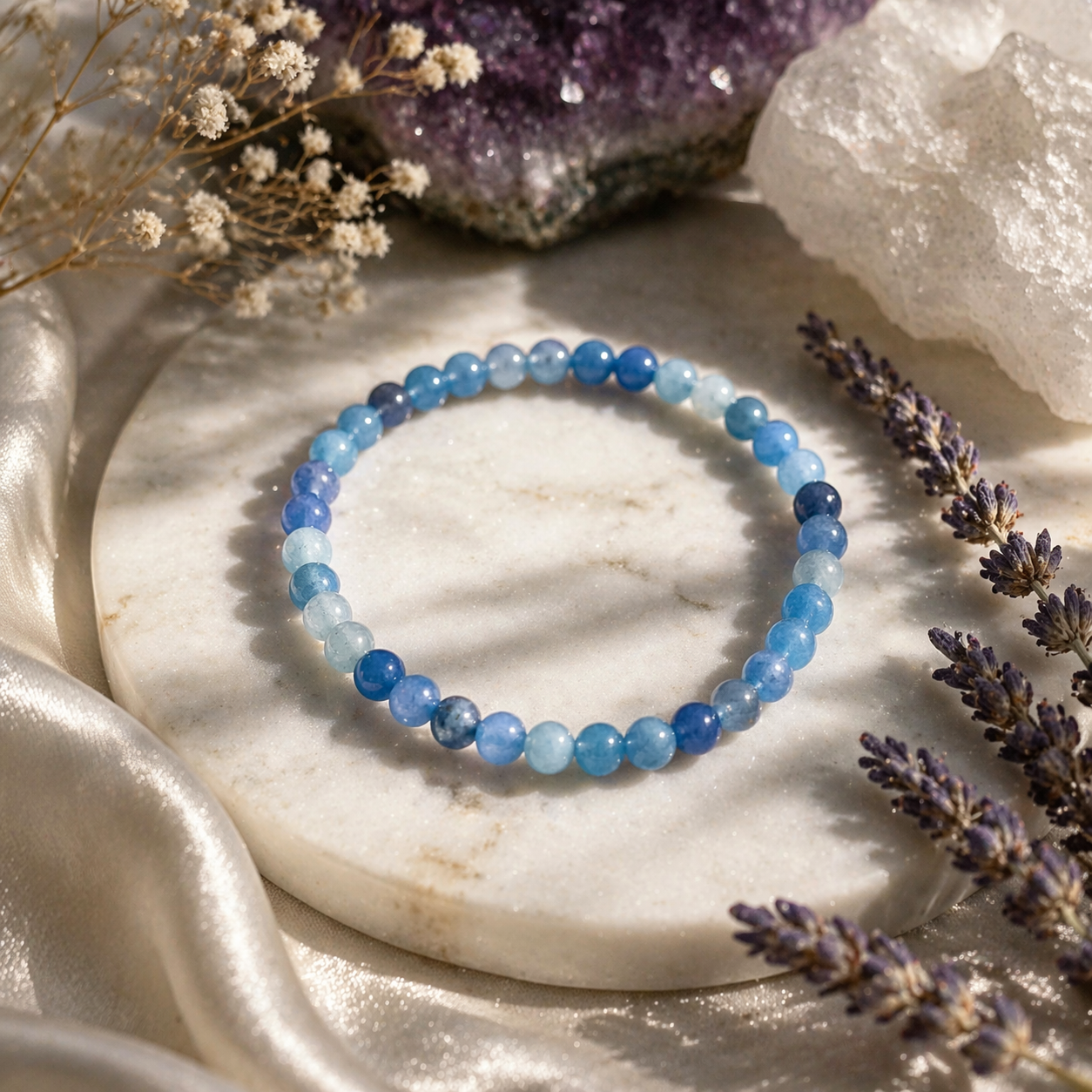 And let’s talk about why she’s extra special… high-quality Blue Chalcedony with this soft, dreamy blue tone is not easy to come by. This isn’t one of those crystals you see everywhere in bulk bins. The more vibrant and evenly colored the stone, the rarer it becomes… which means this bracelet isn’t just pretty, it’s a little luxury moment for your energy ✨