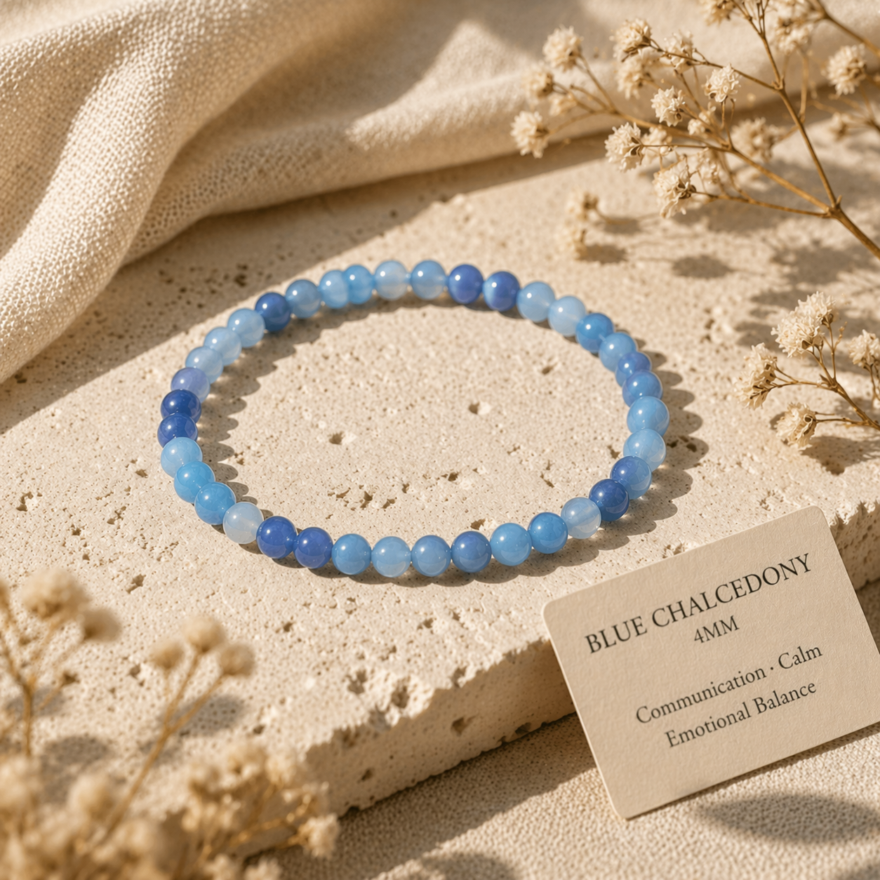 Made with genuine Blue Chalcedony, this beauty is known for its ability to ease anxiety, soften emotional overwhelm, and help you communicate clearly without snapping on everyone (because let’s be honest… some days it’s a struggle 😏).