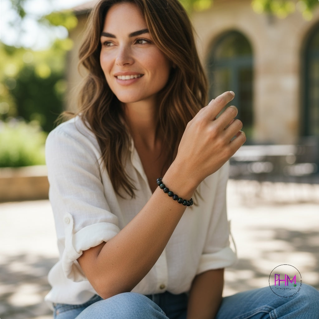 Channel your inner powerhouse with our Golden Sheen Obsidian Bracelet, a stunning talisman of strength, protection, and confidence. ✨ Each bead glimmers with molten gold light — a reminder that your magic is fierce, radiant, and unstoppable.
