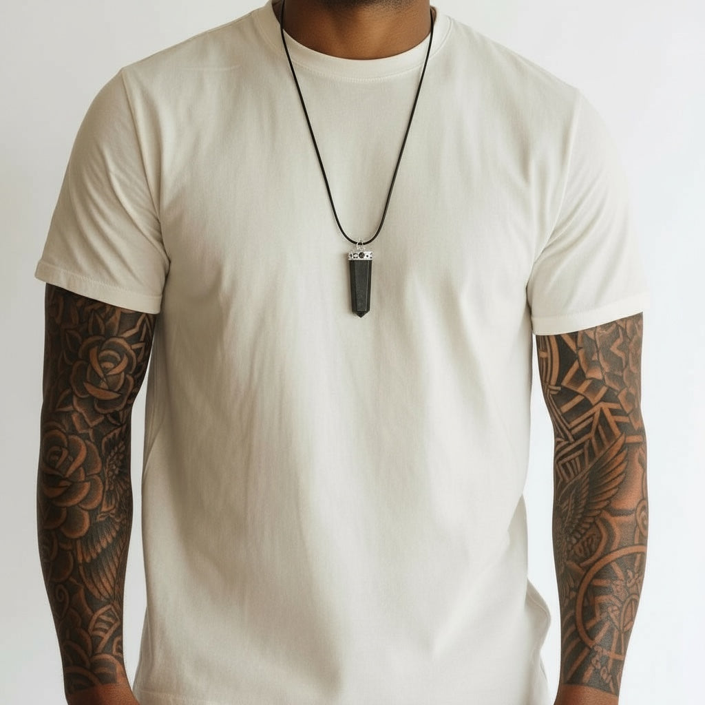 Suspended from a 20" leather cord, this talisman was intentionally crafted without a metal chain to honor the natural weight and energetic potency of the Tourmaline point. It’s both fierce and functional — strong enough to wear daily, powerful enough for ritual or spellwork.