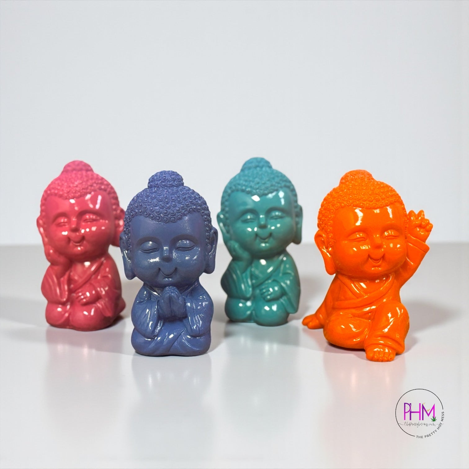 Each Baby Buddha is lovingly crafted from durable cold cast resin, making it both sturdy and full of character. 🌈💫 Available in 4 unique colors and poses, you can pick the one that speaks to your soul — or collect them all for a cheerful mini meditation crew! 💖🎨