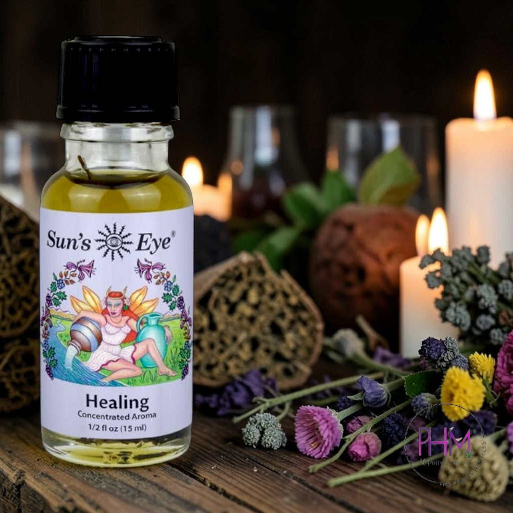 Healing Oil features Peppermint Leaves with soft floral top notes that settle into a comforting rose base. This blend is formulated to amplify the intention of healing, supporting rituals, meditation, and focused energy work centered around renewal and balance.