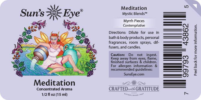 Meditation Oil features Myrrh Pieces with soft, sweet floral top notes and a smooth jasmine base. This blend is formulated to heighten the meditative state, helping create a calm, focused atmosphere that supports stillness, clarity, and spiritual awareness.
