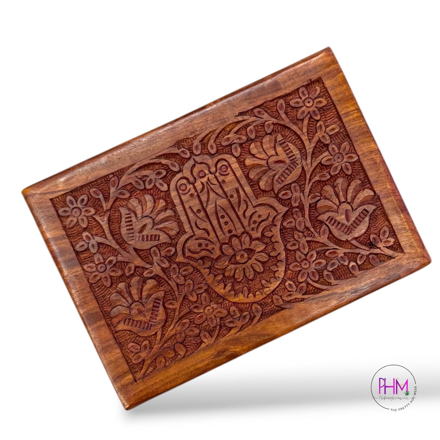 The Hamsa Wood Boxis a beautiful addition to your home decor. Measuring 7" x 5", this decorative box is perfect for storing small items or simply enhancing your space with its unique design. Our products are inspired by global exposure, designed, and manufactured in the USA, promoting America’s economy and our artisans. Enjoy the fine craftsmanship and meaningful design of this product in your home.