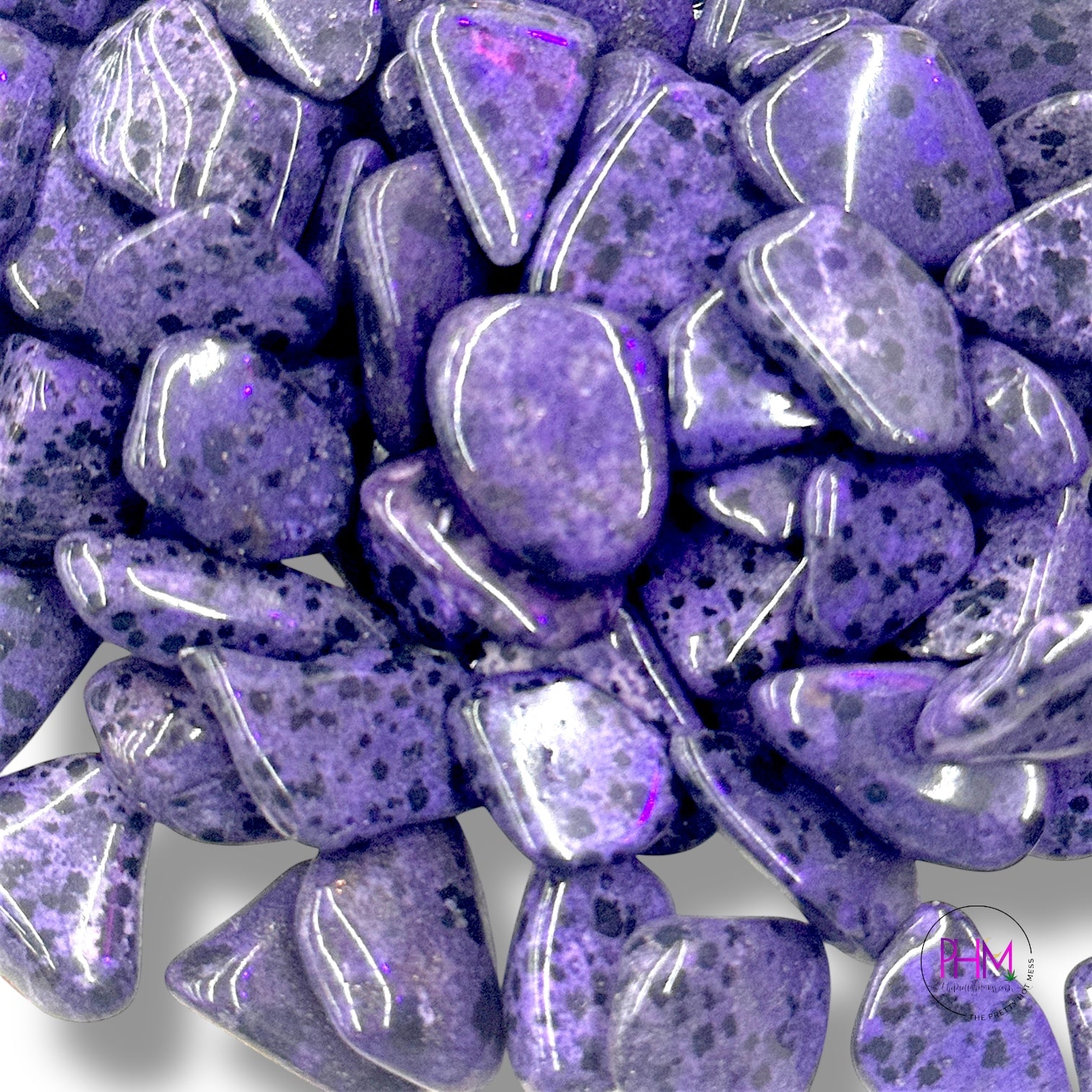 Ominous Purple Howlite resonates strongly with the Third Eye and Crown Chakras, amplifying intuition and enhancing dreamwork. It acts as a bridge between conscious thought and spiritual realms, making it a powerful ally for shadow work, meditation, and energy balancing.