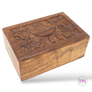 Discover the Sacred Blessings Keepsake Box Collection, a stunning assortment of hand-carved wooden boxes designed to hold your most treasured items and elevate your sacred space. Crafted from solid sheesham wood, each box radiates natural beauty and timeless craftsmanship, measuring approximately 4" x 6"—the perfect size for storing crystals, jewelry, herbs, or keepsakes.