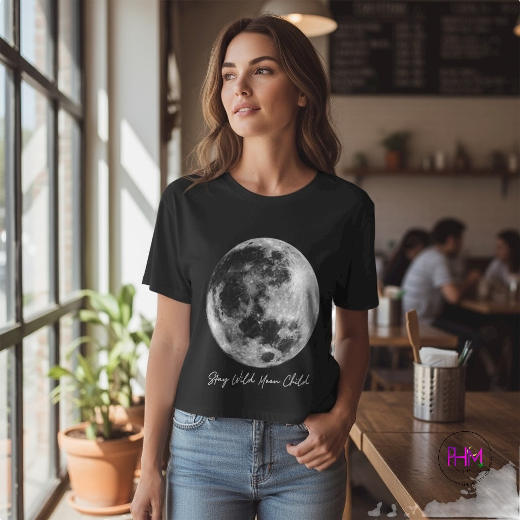 Stay Wild Moon Child Black Cropped Tee ✨🌙