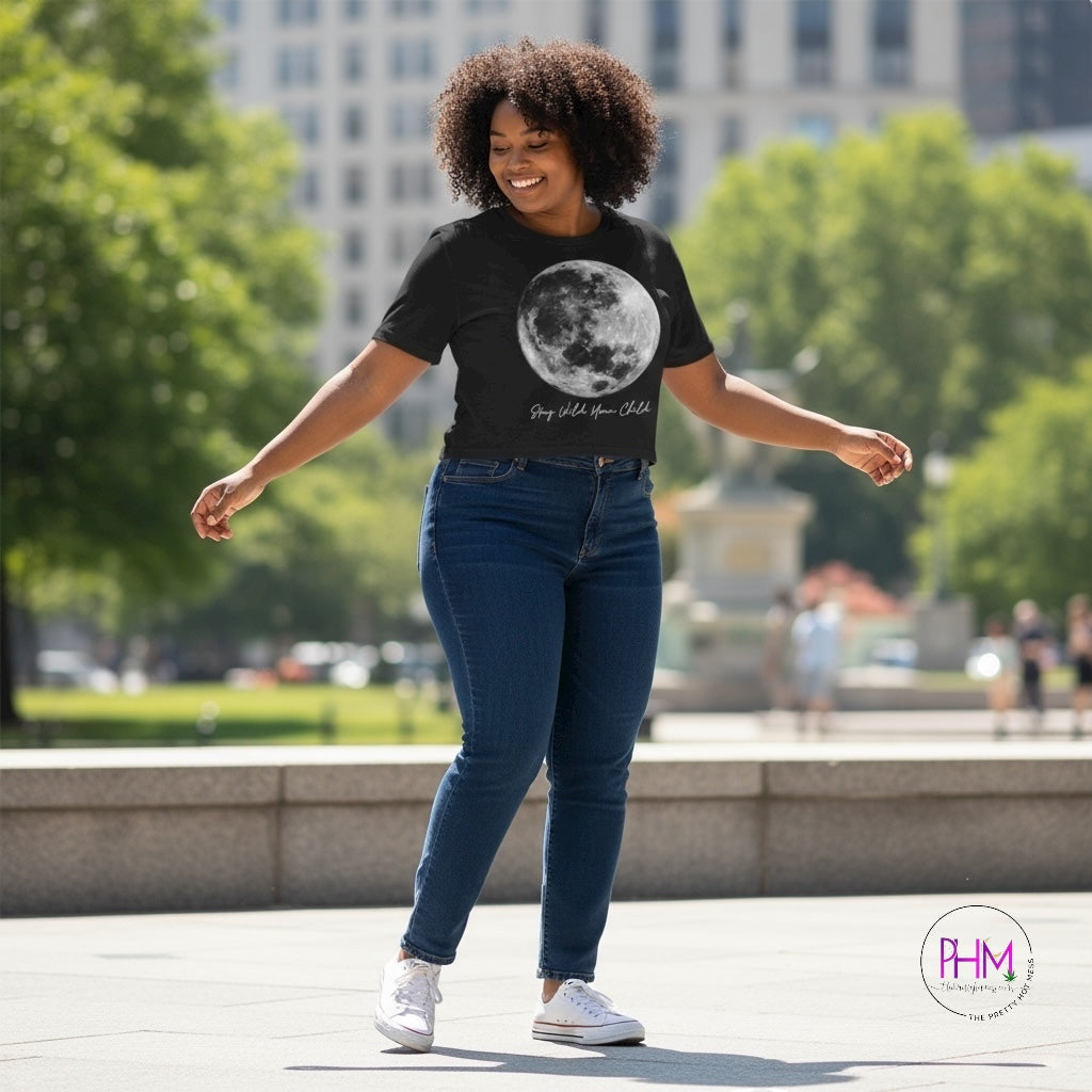🌙✨ Stay Wild Moon Child Black Cropped Tee ✨🌙