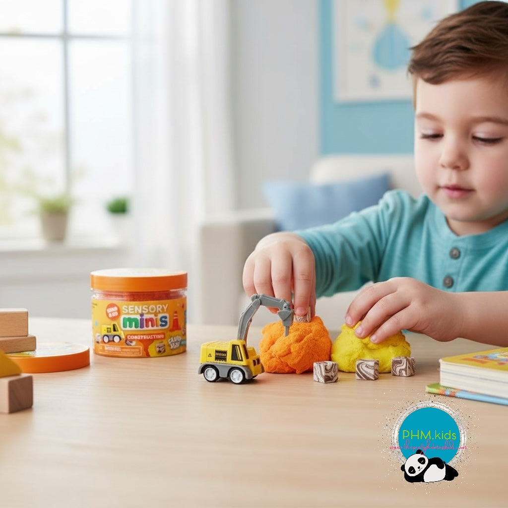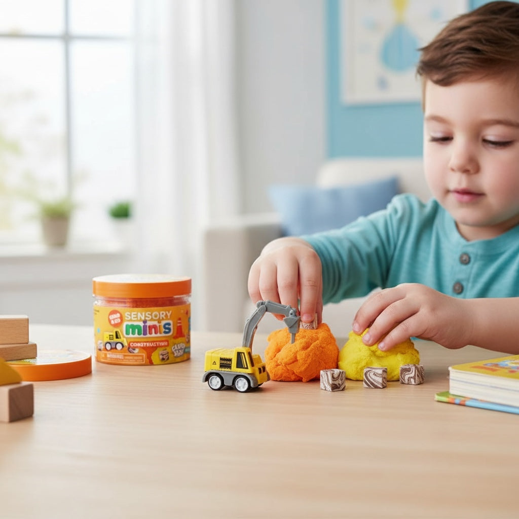 🚧 Construction – Bright colors, mini trucks, and textures to build and play