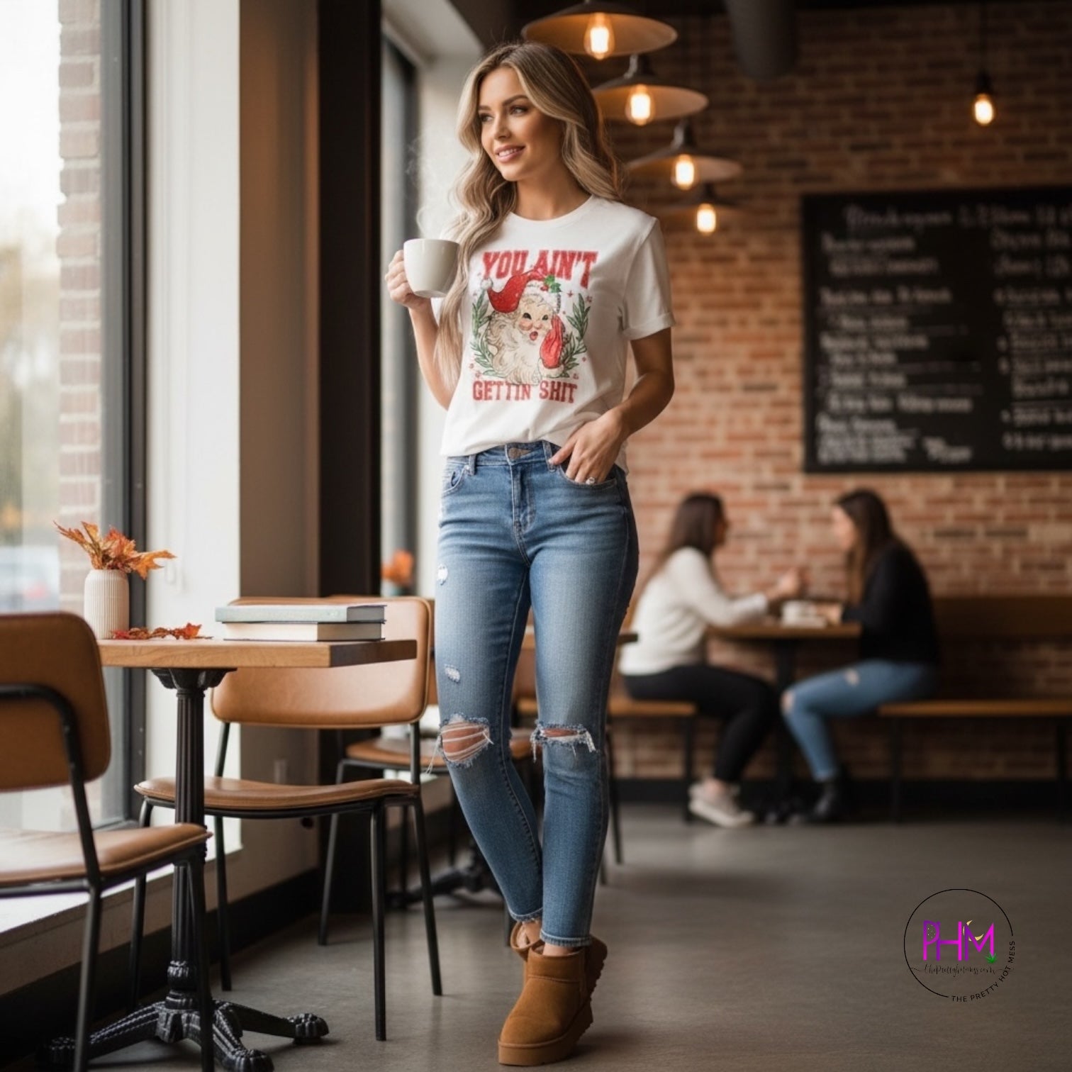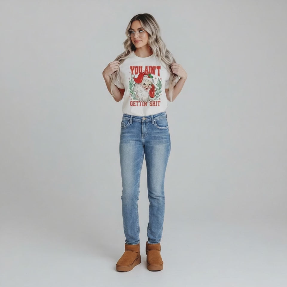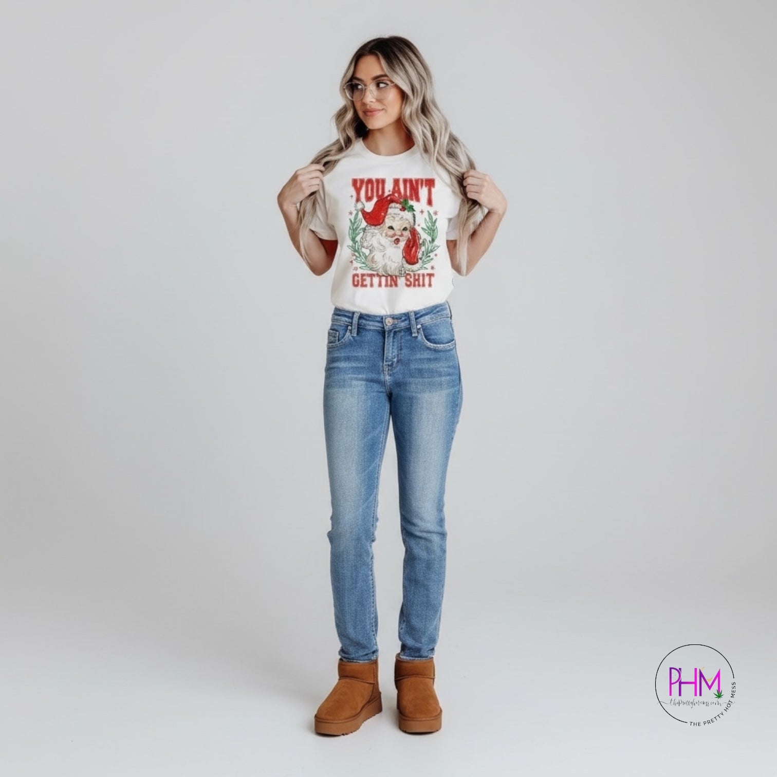 This isn’t your average Christmas tee — it’s your ugly sweater alternative with major attitude. Perfect for anyone who’s a little more naughty than nice.