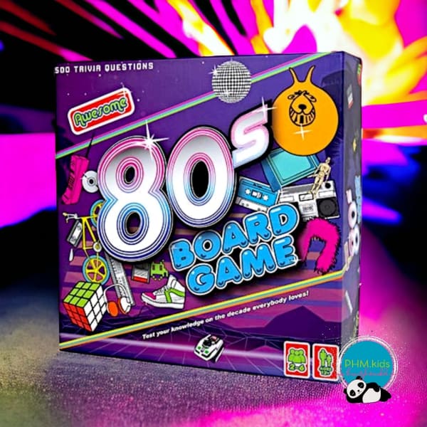 The Awesome 80’s Board Game is an EPIC throwback showdown packed with all the pop culture goodness that made the decade legendary. Music, movies, TV, fashion, and moments that live rent-free in your brain — it’s all here. Perfect for game nights, parties, family gatherings, or friendly feuds with your favorite frenemies.