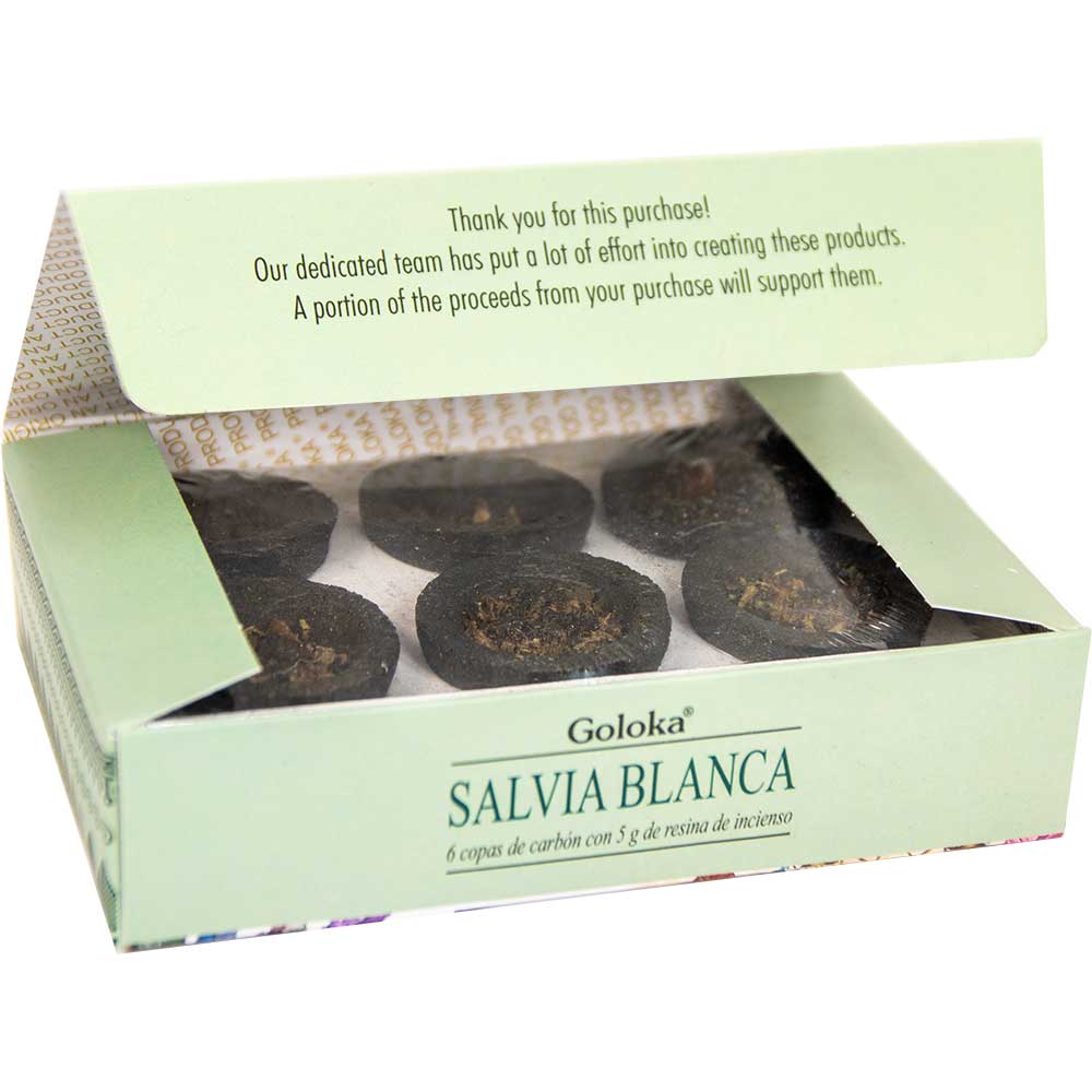 Made with genuine white sage resin blended with charcoal, these little powerhouses are designed for easy burning… no bundles, no crumbling leaves, no drama.