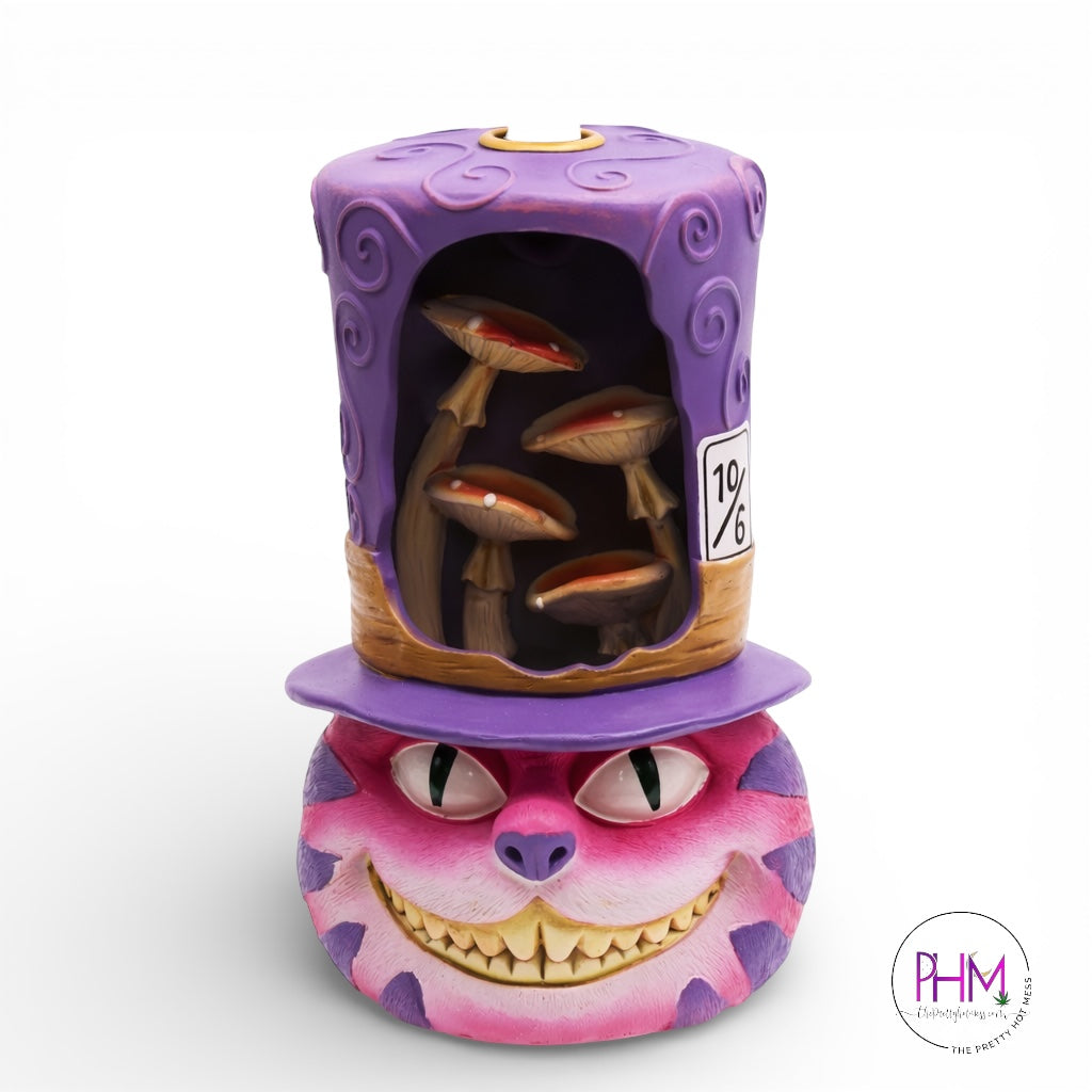 Welcome to your next must-have piece of decor - the Cheshire Cat Back Flow Incense Burner! If youâre looking for something uniquely designed, instantly eye-catching and specially designed for backflow incense cones - this is it. Standing 7 inches tall with an adorable smiling cat wearing a hat, the Cheshire Cat Back Flow Incense Burner stands out, while helping you relax, create a zen ambiance and set the mood in any room. With its vibrant colors and back flow design that emphasizes its character-like aspect, it will leave everyone wondering why he's smiling in the first place.