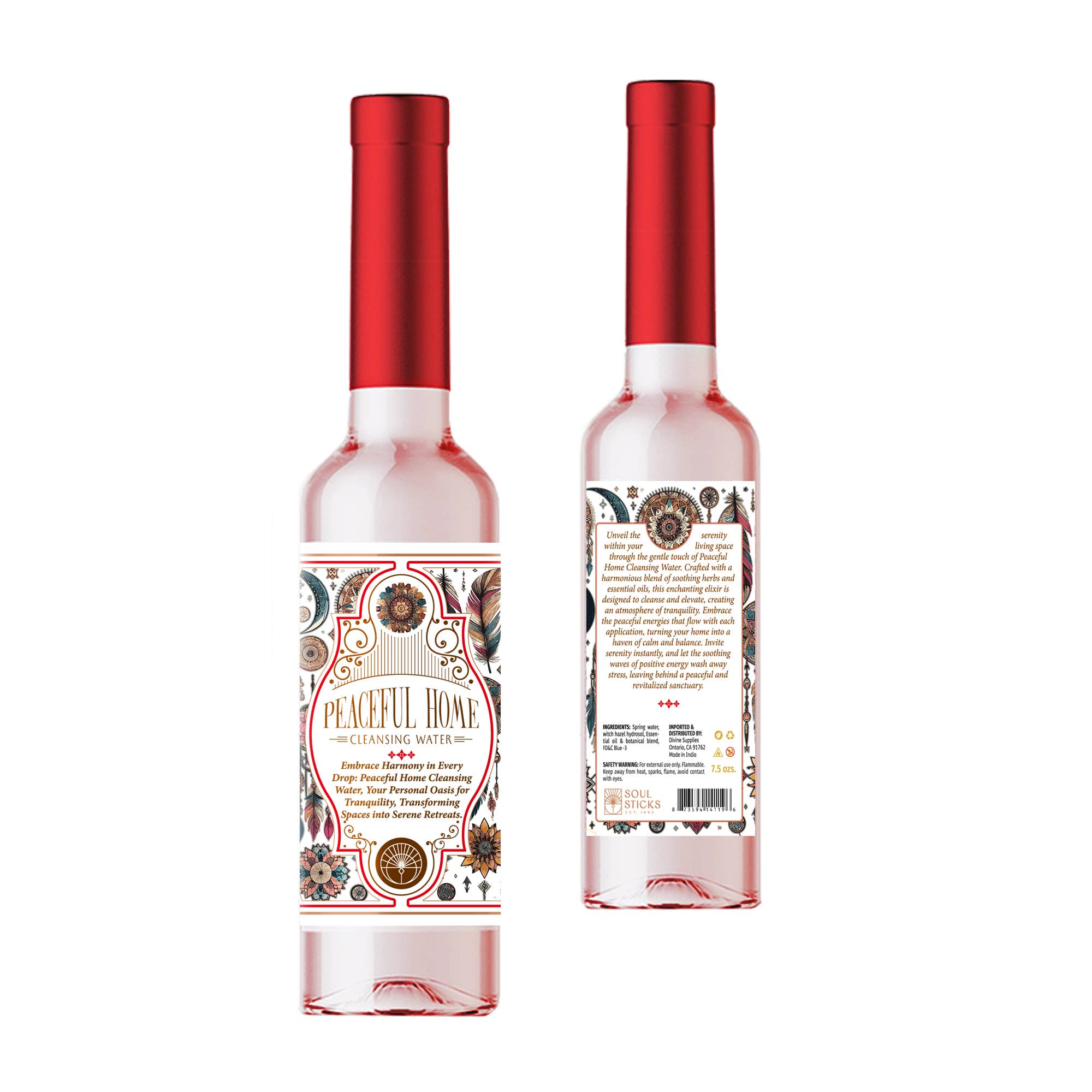 7.5 oz. Plastic Bottle w/ Peaceful Home Cleansing Water Spiritual Cleansing Water is often used in various cultural and religious practices, holds significance beyond physical purification. It's a symbolic medium to cleanse the spirit and environment, promoting harmony and balance. Created through rituals, it combines water's purity with spiritual intent. Ingredients like herbs, oils, or crystals are added, each carrying unique energies. During use, practitioners may sprinkle or spray it to cleanse spaces, objects, or themselves. The process aims to dispel negativity, invite positive energies, and enhance spiritual connection. It's a ritualistic bridge between the physical and metaphysical, fostering a renewed sense of tranquility and renewal.