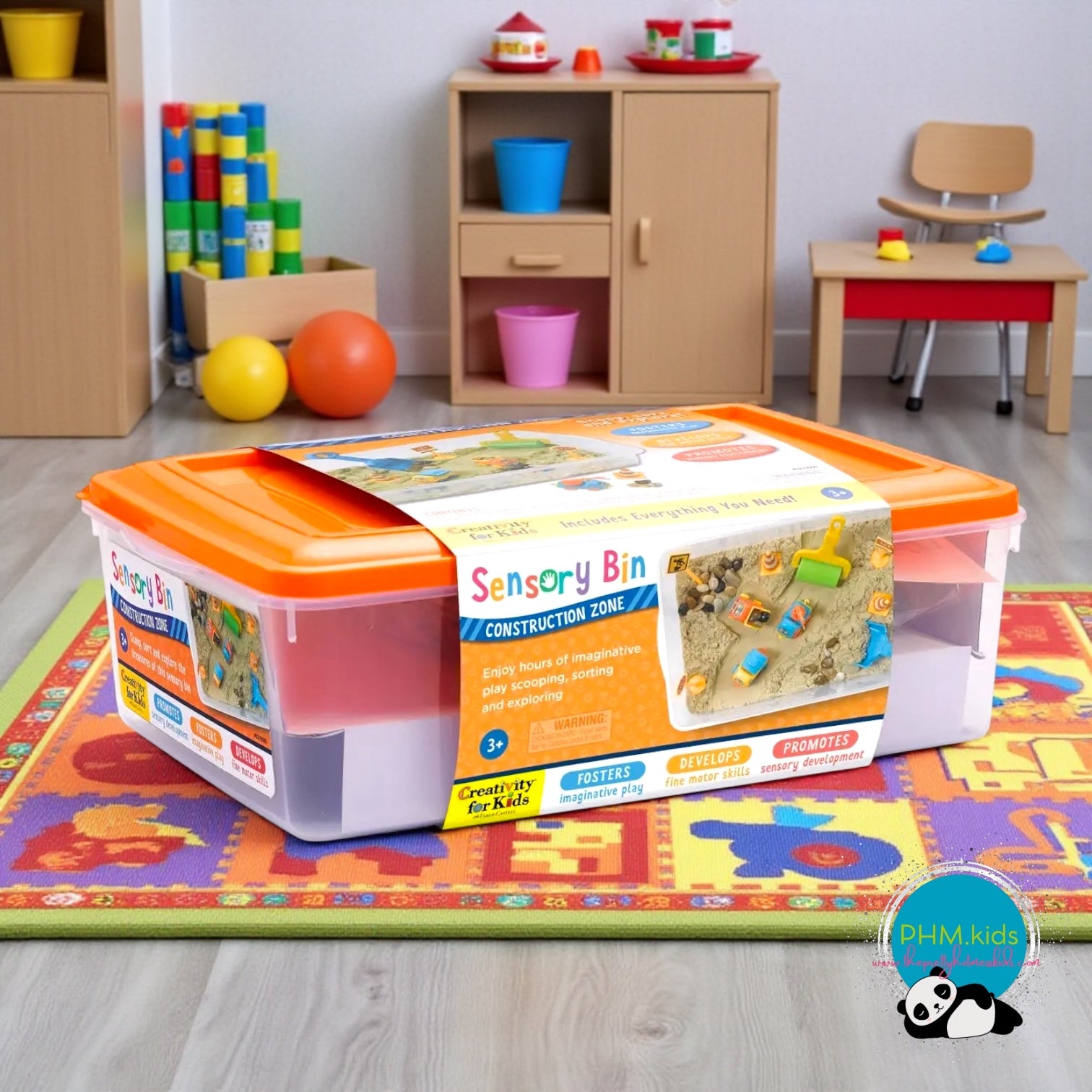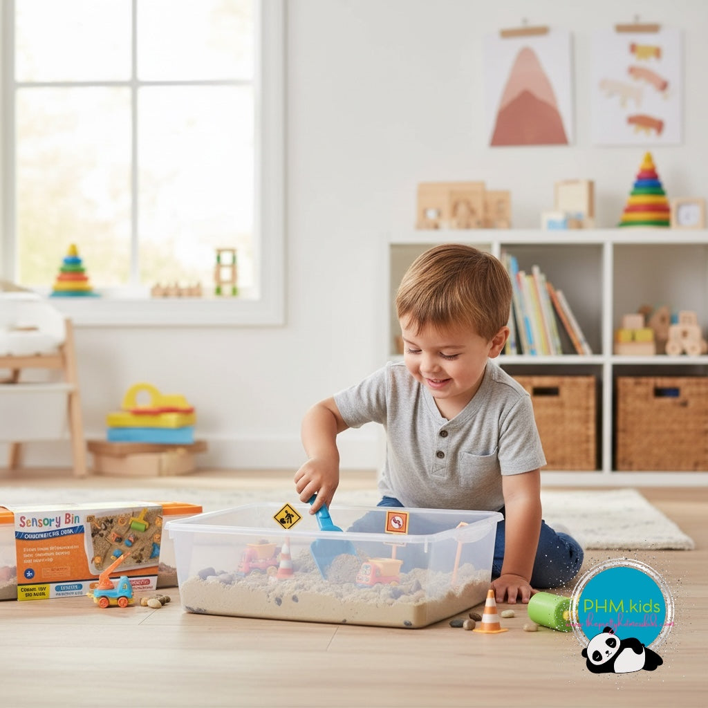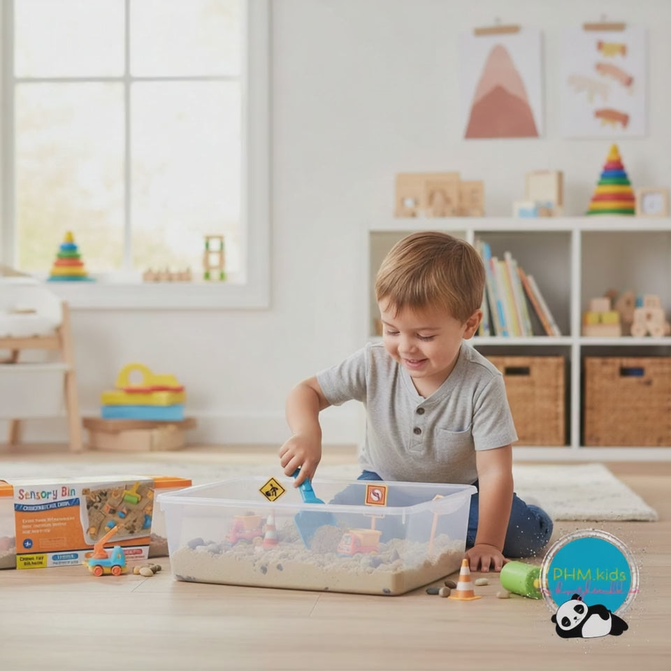 Dig, dump, and build your way through this exciting sensory adventure! Packed with sensory sand, rocks, and mini trucks, the Construction Zone Sensory Bin turns any tabletop into a mini job site. Perfect for hands-on exploration, fine motor development, and endless imaginative play.